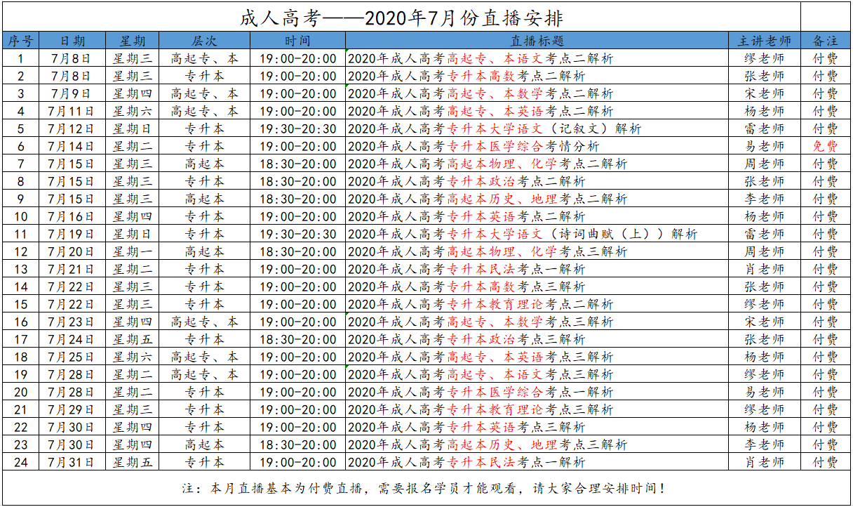 所在位置:云南成考網(wǎng) > 云南成考資訊 > 2020年7月云南成人高考直播課程安排(含免費課程)