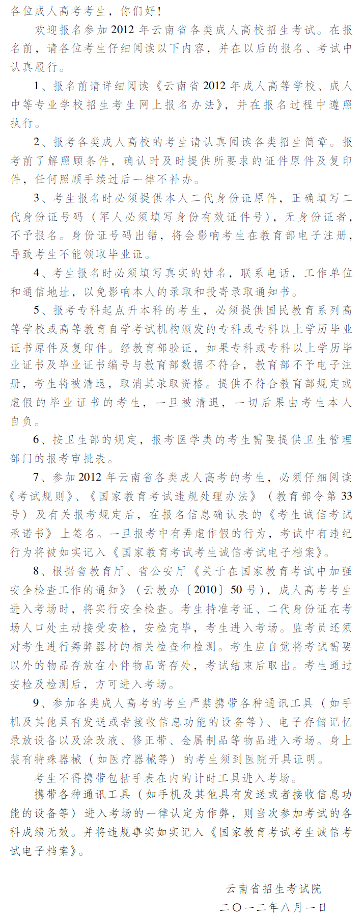 所在位置:云南成考網 > 云南成考政策 > 成人高考考生報名須知
