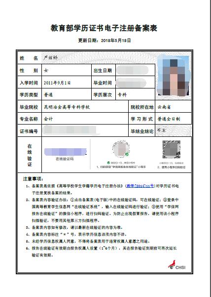 (a)怎樣獲得《教育部學歷認證書電子注冊備案表》(樣本見附件1):登錄中國高等教育學生信息網(http://www.chsi.com.cn)下載。如果學信網上沒有考生的注冊信息,需考生持專科畢業證原件及復印件、身份證原件及復印件,到云南省教育廳就業指導中心驗證(電話:087165156862),并開具學歷認證報告。
