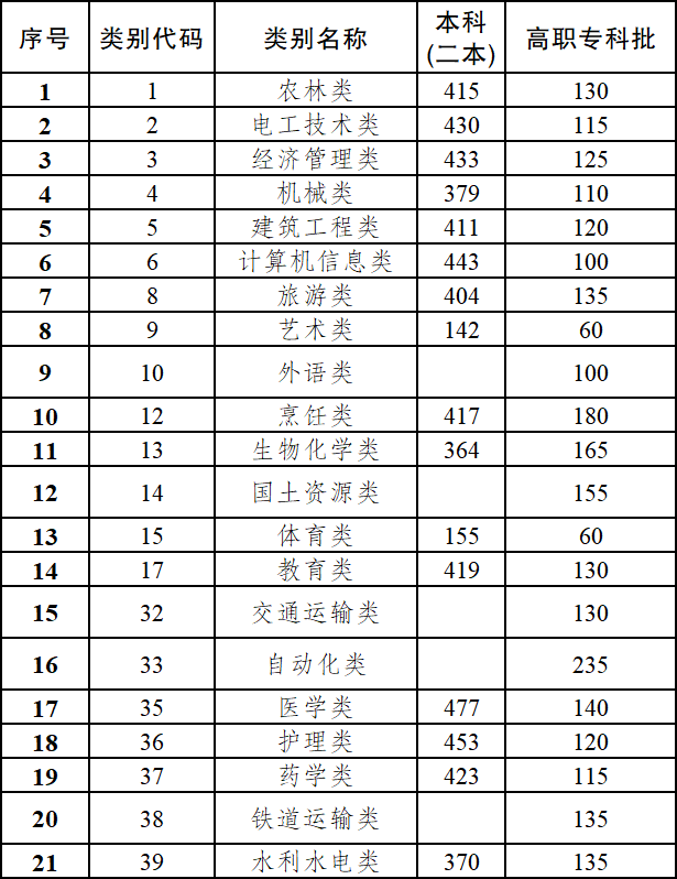 2020年云南省高職院校招收“三校生” 招生錄取最低控制分?jǐn)?shù)線